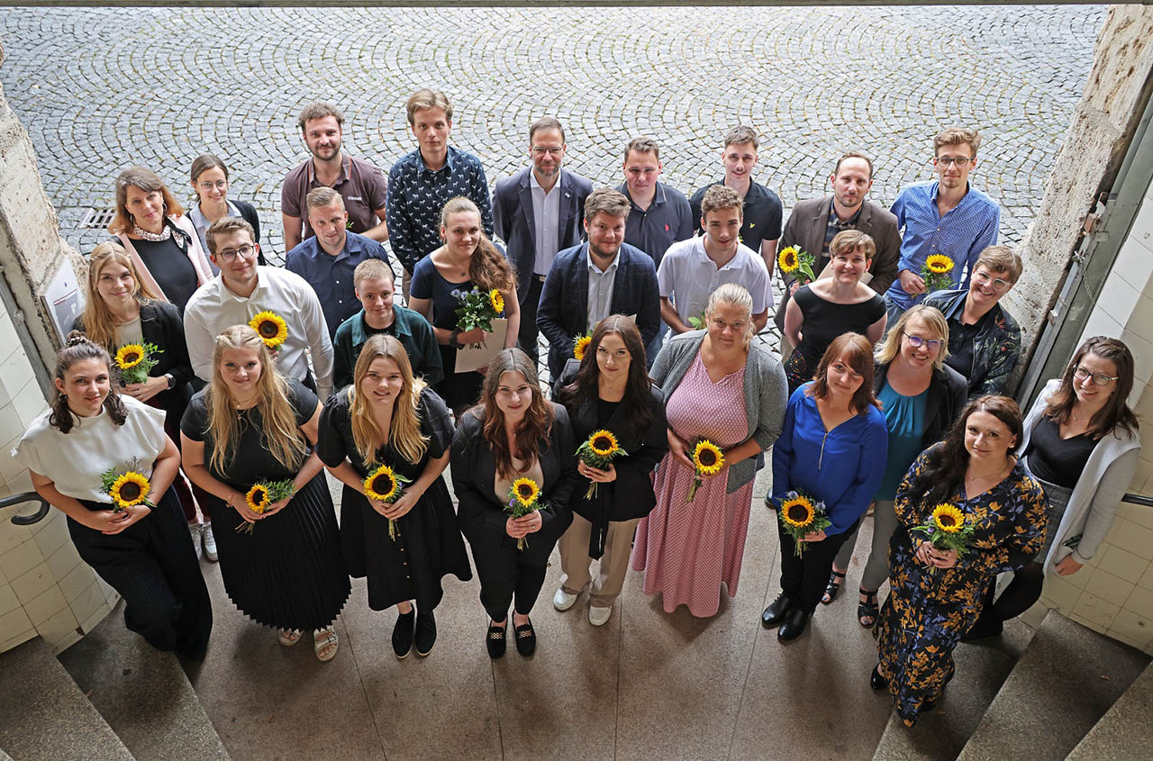 Neben der Begrüßung der neuen Azubis wurden auch 37 Absolventinnen und Absolventen offiziell verabschiedet. Viele von ihnen bleiben der Stadt Jena treu und treten in verschiedenen Bereichen ihren neuen Beruf an.