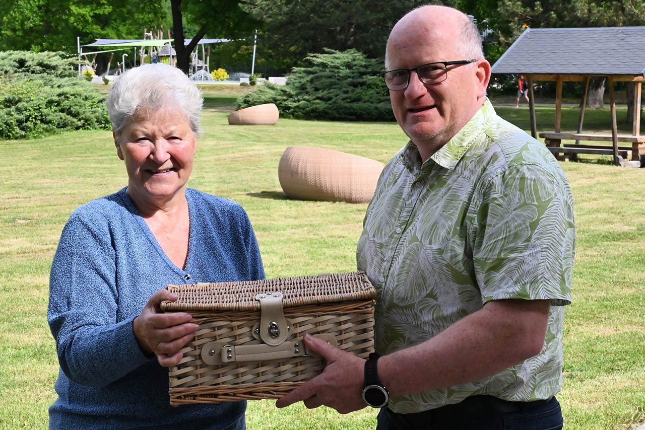 „Das Wetter spielt für mich keine Rolle. Ich komme jeden Tag – außer es steht mal etwas anderes an“, sagt die rüstige Seniorin mit einem Lächeln. Zu ihrem Ehrentag gab es für sie ein besonderes Geschenk: einen liebevoll gepackten Picknickkorb, überreicht von Betriebsleiter Ulrich Klose von den Jenaer Bädern.